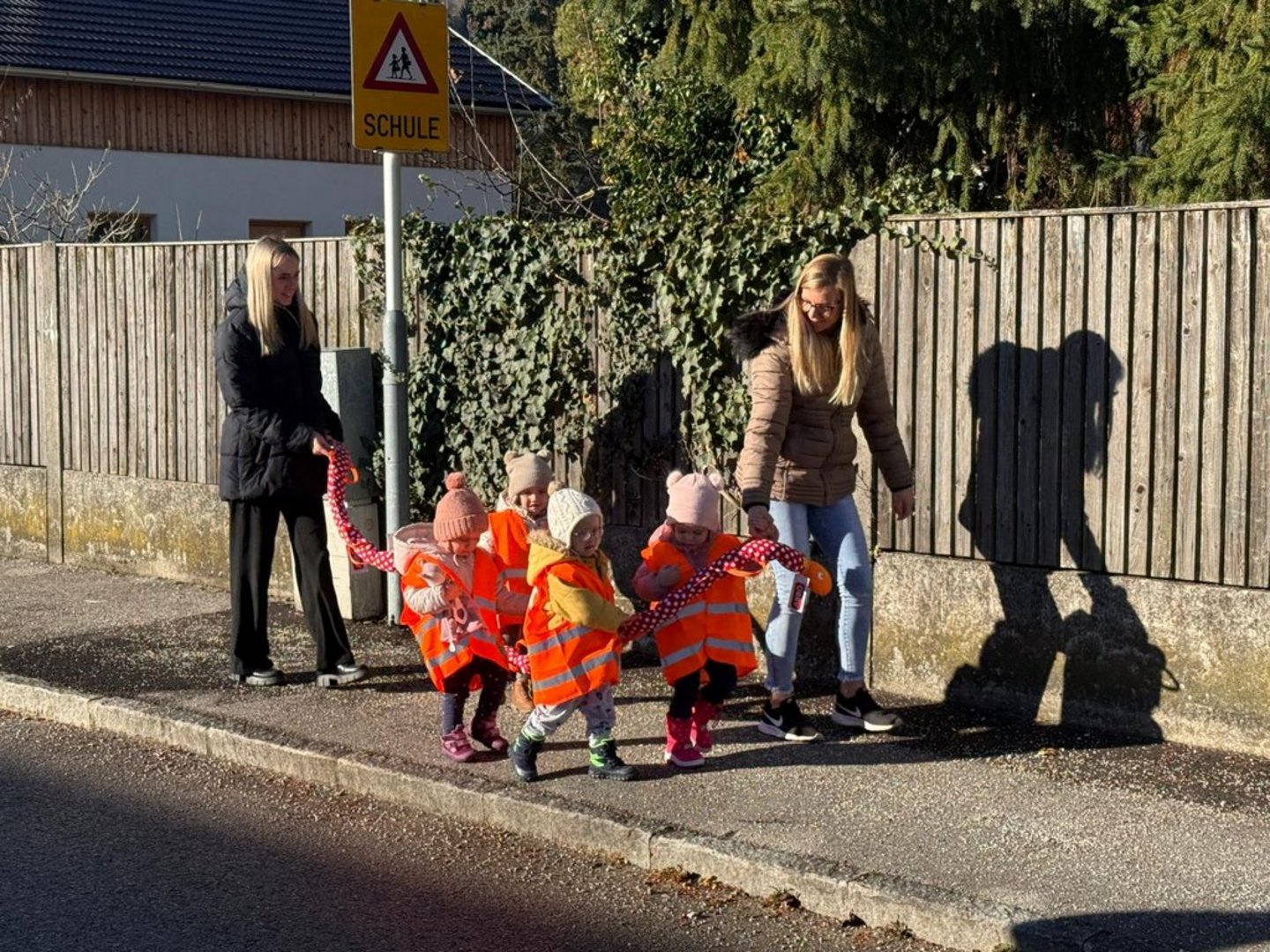 Die kindgerechten Warnwesten machen die Kleinen im Straßenverkehr besser sichtbar, und das besonders bei schlechten Sichtverhältnissen wie nun im Herbst und im Winter. Zudem wird die Aufmerksamkeit der Autofahrer erhöht, falls sie Kinder mit orangen Warnwesten auf den Straßen sehen. Die Spazierraupen, an welchen sich die Mädchen und Buben festhalten sollen, sorgen dafür, dass alle Kinder, wenn sie in der Gruppe unterwegs sind, eng beieinanderbleiben und sich unterwegs gut orientieren können. Jedes Kind hat einen eigenen Griff, was sowohl Sicherheit als auch Ruhe in die Gruppe bringt. Für die Pädagoginnen und die Betreuerinnen bedeutet das, dass sie einen besseren Überblick haben und weniger Stresssituationen erleben, während sie im Rahmen der Tagesbetreuung mit den Kindern im Freien spazieren.
