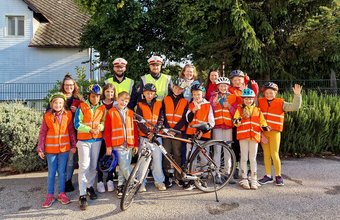 Die Schüler der vierten Klasse der Volksschule in Radlberg sind zur Fahrradprüfung angetreten.