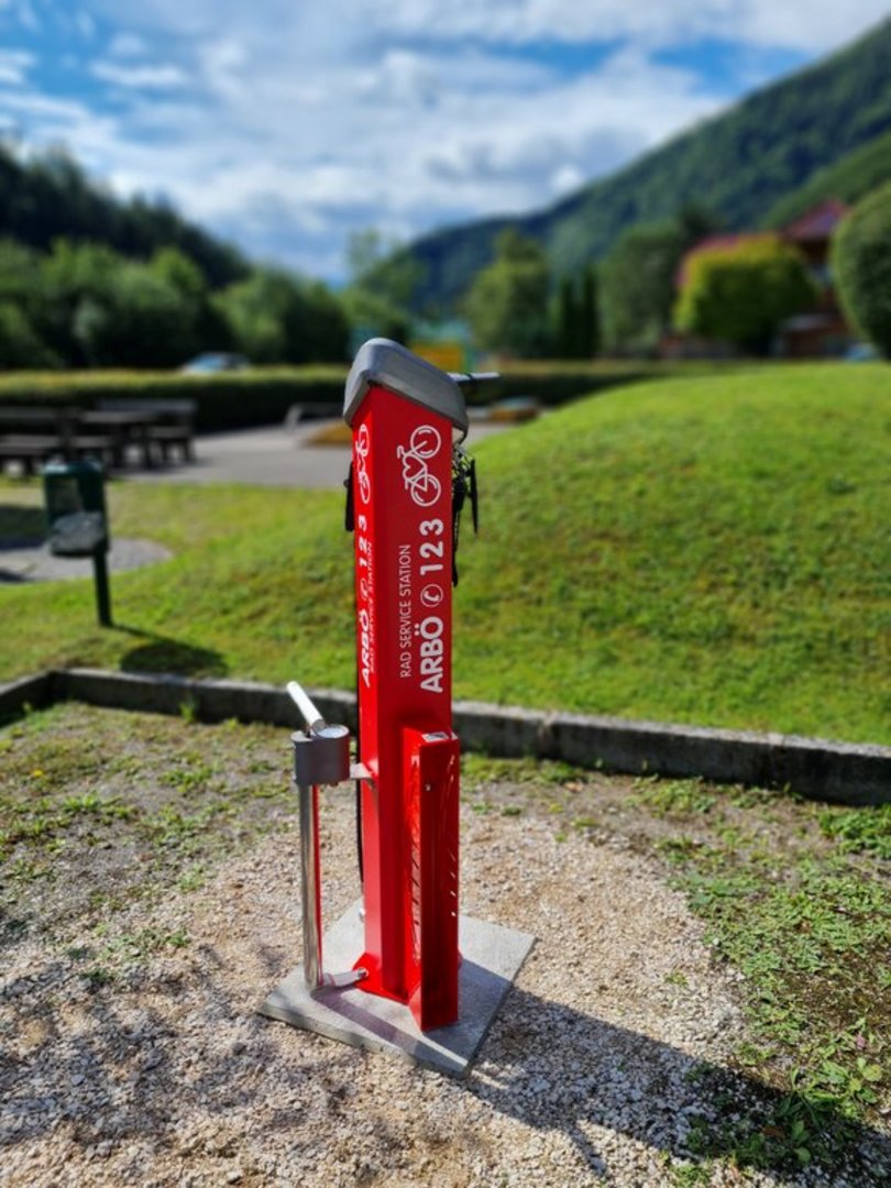 Die Service-Stationen sind etwa 1,4 Meter hoch und mit einer Aufhängevorrichtung für Fahrräder versehen. Mithilfe der Handwerkzeuge wie Schraubenzieher, Inbus- und Schraubenschlüssel etc. sowie einer Luftpumpe ausgestattet können Sie bequem und kostenfrei kleinere Gebrechen selbst beheben.