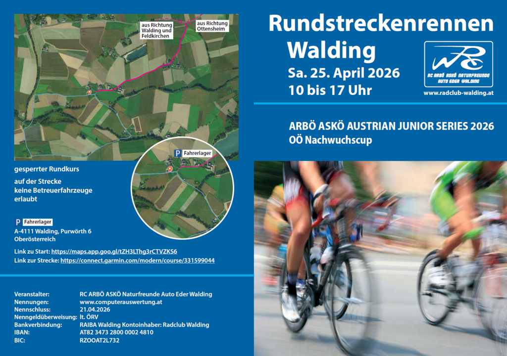 Der RC ARBÖ ASKÖ Walding veranstaltet am 25. April 2026 das "Rundstreckenrennen Walding" als Teil der ARBÖ ASKÖ Austrian Junior Series